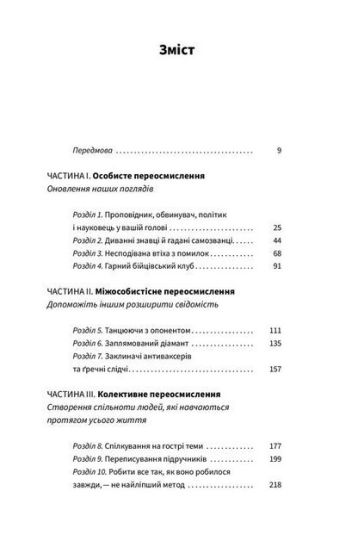 Автор бестселерів «Оригінали» та «Давати і брати» цього разу досліджує мистецтво переосмислення: вміння ставити під сумнів власні думки та відкривати думки інших людей, щоб досягти бездоганності в роботі та мудрості в житті. Інтелект прийнято розглядати як здатність думати та навчатися, однак в нашому стрімкому світі є інший набір когнітивних навичок, що значно важливіші, – вміння переосмислювати та розучуватися. У нашому повсякденному житті надто багато з нас надають перевагу комфорту переконаності проти незручності сумнівів. Ми розглядаємо суперечності як загрозу для нашого его, а не як можливість вчитися. Ми оточуємо себе людьми, які погоджуються з нашими висновками, коли нам слід тягнутися до тих, хто кидає виклик нашому мисленню. Ця книжка закликає вас подумати знов, і не вірити усьому, у чому ми так переконані. Автор запрошує відмовитись від поглядів, які вже не приносять нам користі, і підносить розумову гнучкість над дурною переконаністю. Якщо знання – це сила, знати те, чого ми не знаємо, – мудрість.