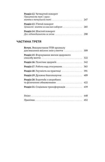 На сторінках книжки відомий психолог і дослідник Стівен Гаєс знайомить читачів з одним із найпотужніших нині підходів до поліпшення життя – терапією прийняття та відповідальності (ТПВ). Розум людини, запрограмований на вирішення проблем, постійно змушує нас тікати від усього, що спричинює страх і біль, однак життя — це не проблема, яку неодмінно треба розв’язати. Автор переконаний, що зажити повноцінним і змістовним життям зможе лише той, хто навчиться приймати свою вразливість і повертатися лицем до болю, опанувавши навички психологічної гнучкості.