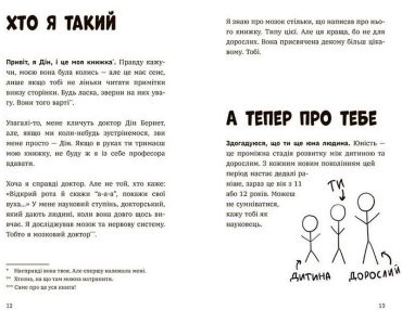 Якщо так - ця книжка для тебе. Разом з її автором, доктором нейрології і крутим блогером Діном Бернетом, ти зможеш розібратися, звідки береться це постійне буркотіння і невдоволення щодо твоїх шкільних оцінок, прибирання (чи неприбирання) у кімнаті, залипання в екран смартфона… геть усього! Дізнайся нарешті, як зрозуміти, що коїться в голові батьків і що в твоїй. Бо зрозуміти - вважай, запобігти конфліктам і сваркам, які додають турбот у твоє життя.- АвторДин Бернет