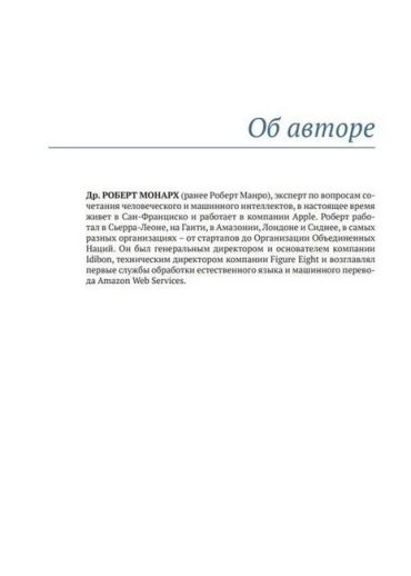 В книге изложены методики эффективной совместной работы людей и машин. Здесь вы найдете лучшие практики по выбору образцов данных для обратной связи с человеком, контролю качества аннотаций человека и разработке интерфейсов аннотаций.