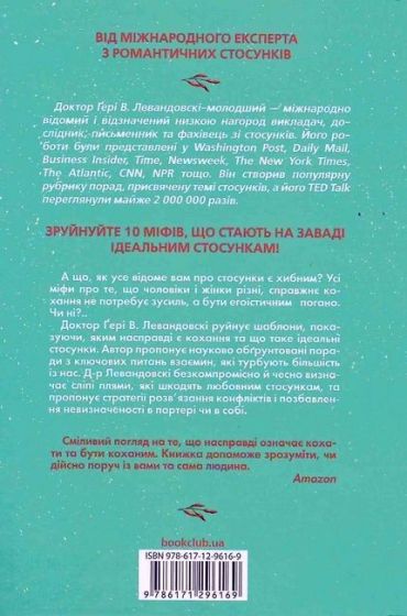 Доктор Ґері В. Левандовскі-молодший розриває шаблони та показує, яким насправді є кохання та що таке ідеальні стосунки (і як їх збудувати). Автор пропонує науково обґрунтовані поради з ключових питань взаємин, які турбують більшість із нас. Доктор Левандовські безкомпромісно та чесно визначає сліпі плями, які саботують любовні стосунки, та пропонує стратегії вирішення романтичних конфліктів, постійних сварок та невизначеності в партнері (чи собі).