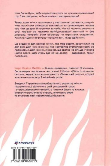 Ця книжка може бути інструкцією з того, як видати книжку або інструкцією з пошуку нового місця роботи, чи нового хобі, одним словом, вона про те, як взяти себе в руки і наважитись на зміни. Цей мотиваційний і практичний нон-фікшн допоможе дівчатам, які хочуть реалізуватись в улюбленій справі.