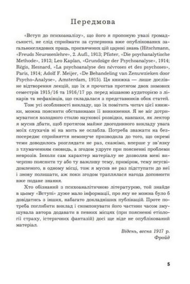 "Вступ до психоаналізу" – це не посібник із самовдосконалення, не книжка типу "допоможи собі сам" і навіть не енциклопедія. Це введення до розуміння складних механізмів людської психіки. Читаючи ці лекції, ти справді уявляєш себе студентом початку ХХ століття. Спочатку з недовірою вивчаєш лектора, але з кожним новим заняттям все уважніше поглинаєш його умовиводи і сентенції. І мушу сказати, що Фройд уміє зацікавити. Він доступно пояснює суть несвідомого, що воно приховує і як впливає на нашу свідоме життя.