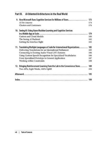 Take advantage of the power of cloud and the latest AI techniques. Whether you're an experienced developer wanting to improve your app with AI-powered features or you want to make a business process smarter by getting AI to do some of the work, this book's got you covered. Authors Anand Raman, Chris Hoder, Simon Bisson, and Mary Branscombe show you how to build practical intelligent applications for the cloud, mobile, browsers, and edge devices using a hands-on approach.