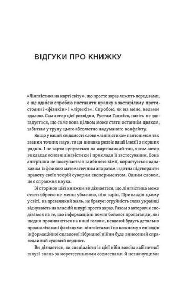У книжці мовознавця Рустама Гаджієва ви знайдете лінгвістичні історії з усього світу — від Нікарагуа, де місцеві діти самі створили для себе жестову мову, й до Великої Британії з її Пороховою змовою, катами і започаткованими ними словами. Чому сучасний ісландець запросто може прочитати древні тексти без допомоги, і чому у нас так не вийде? Як навахо шифрували послання американців під час Другої світової війни та чим така страшна валлійська (яка насправді не така вже й валлійська)?