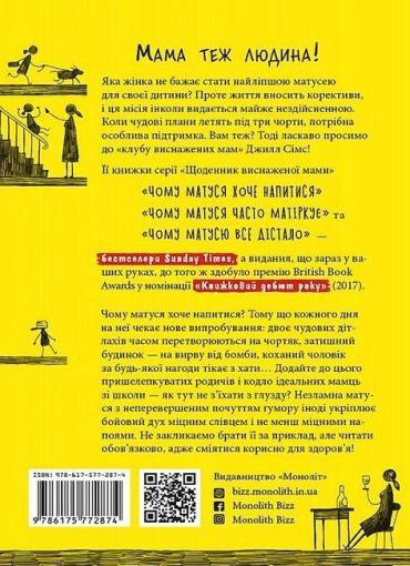Книжки Джилл Сімс, що увійшли в серію «Щоденник виснаженої мами»: «Чому матуся хоче напитися», «Чому матуся часто матіркує» та «Чому матусю все дістало» — бестселери Sunday Times.