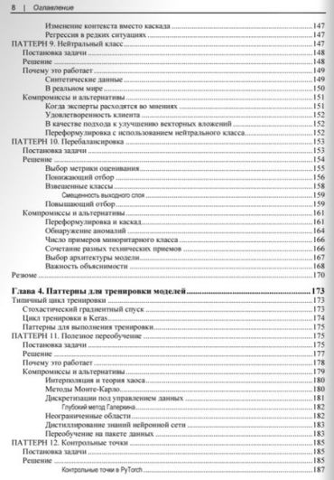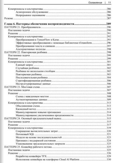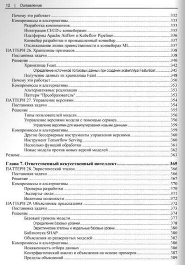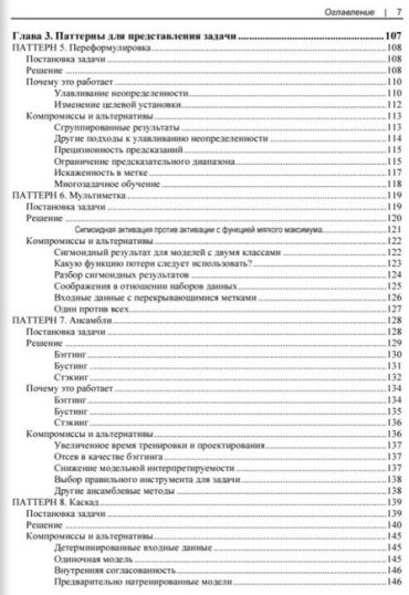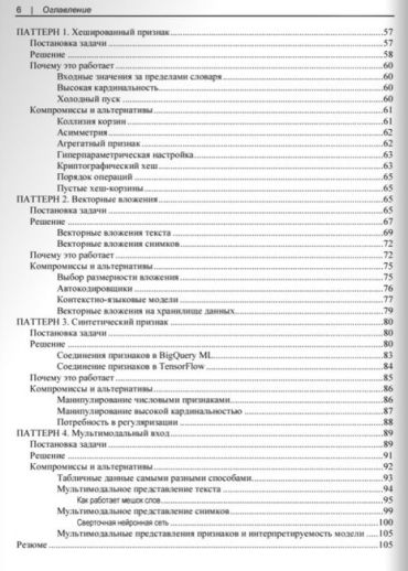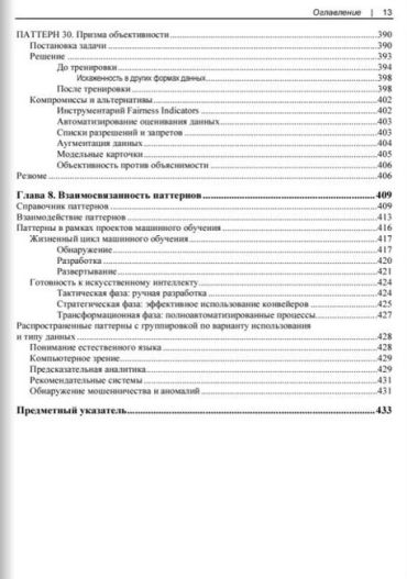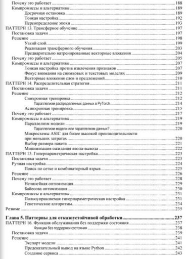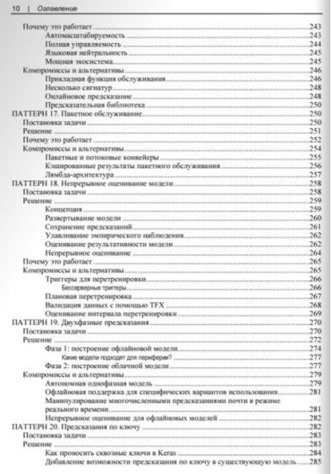 Приводимые в книге паттерны проектирования отражают лучшие практические подходы к решению типичных задач машинного обучения. Указанные паттерны, реализованные в программном коде, сконцентрировали опыт сотен экспертов в простые и легкодоступные советы. Книга содержит подробный разбор 30 паттернов, служащих для представления данных и задач, тренировки моделей, отказоустойчивого обслуживания, обеспечения воспроизводимо-сти и искусственного интеллекта. Каждый паттерн включает в себя постановку задачи, ряд потенциальных решений и рекомендации по выбору технического приема, наилучшим образом подходящего к данной ситуации.