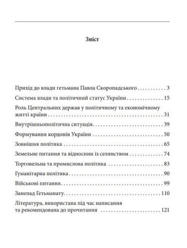 Гетьманат (квітень – грудень 1918 року) став важливою віхою розвитку незалежної Української держави в ході революційних подій 1917-1921 років. Період, якому присвячена книжка, позначився підсиленням процесів державотворення, що бурхливо розпочалися за Центральної Ради, переведенням їх у більш організоване русло. У центрі уваги читача опиняться події, які уможливили прихід гетьмана Павла Скоропадського до влади, головні досягнення його уряду в різних сферах. Водночас з’ясовуються причини невдач гетьманату щодо розв’язання чутливих для тодішньої України питань, збереження поляризації суспільства, наслідком чого стало падіння гетьманату та прихід до влади Директорії.