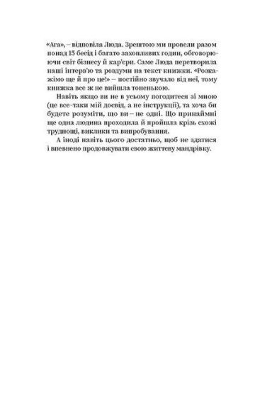 Ця книжка про те, як відсікти зайве і знайти саме свій шлях. Адже насамперед від нас самих залежить, як ми проживемо власне життя. Це може трохи лякати, оскільки передбачає повну відповідальність за свої дії, але це відправна точка для будь-яких звершень.