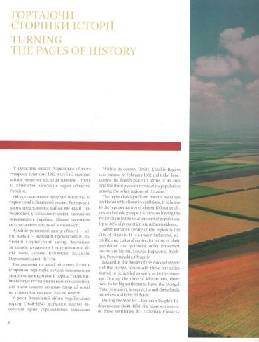 Dedicated to the 30th anniversary of Ukraine’s Independence, this edition includes photos of historic and memorial sites, natural and recreational facilities, illustrative and information materials on festive and cultural mass events in the City of Kharkiv and Kharkiv Region. The photo-album also includes photos illustrating the economic potential of the region, since Kharkiv Region today is one of the major industrial and farming regions of Ukraine.