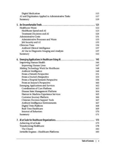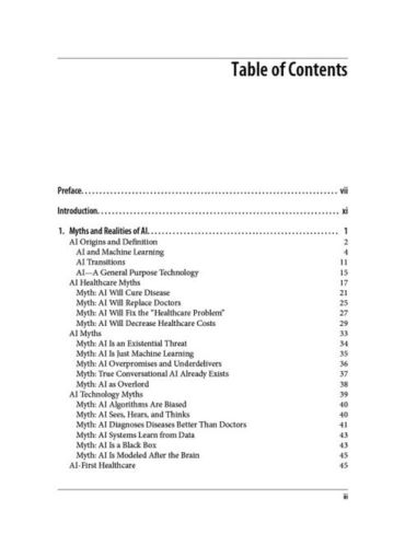 AI is poised to transform every aspect of healthcare, including the way we manage personal health, from customer experience and clinical care to healthcare cost reductions. This practical book is one of the first to describe present and future use cases where AI can help solve pernicious healthcare problems.