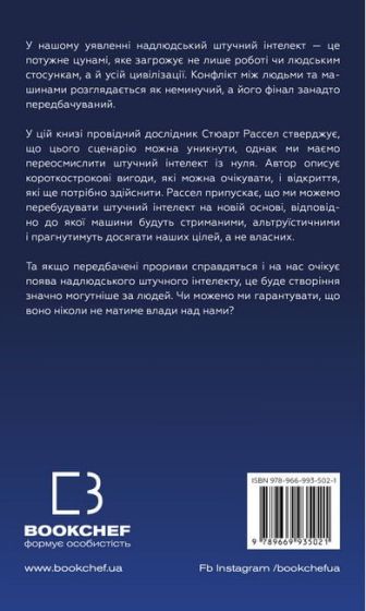 У цій книзі провідний дослідник Стюарт Рассел стверджує, що цього сценарію можна уникнути, однак ми маємо переосмислити штучний інтелект. Автор описує короткострокові вигоди, які можна очікувати, і відкриття, які ще потрібно здійснити. Рассел припускає, що ми можемо перебудувати штучний інтелект на новій основі, відповідно до якої машини будуть стриманими, альтруїстичними й прагнутимуть досягати наших цілей, а не власних.
