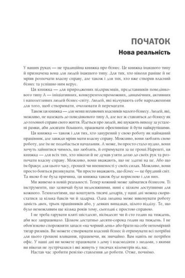 Довідайтеся, як започаткувати справу чи вдосконалити власний бізнес. Автори крок за кроком навчать вас, як почати справу, пояснять, чому вам треба менше, ніж ви думаєте, порадять, як зробити так, щоб про вас дізналися, порекомендують, кого і коли варто взяти на роботу, а також як з усім цим упоратися.