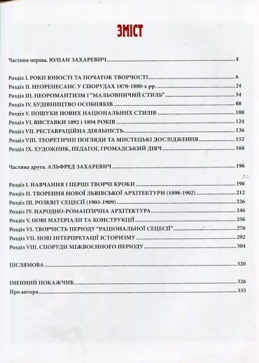 Книга присвячена діяльності архітекторів – Юліана Захаревича і його сина Альфреда Захаревича.