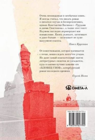 "Казалось бы, мир метафизического Петербурга давно и подробно освоен литературой, но роман Льва Наумова ""Пловец Снов"", находящийся на стыке магического реализма и русского символизма, показывает, что его пространство всегда ново и незаурядно. В этом произведении можно обнаружить черты остросюжетного детектива, литературоцентричного философского размышления, леденящего кровь хоррора, даже романтической драмы. В любом случае история о том, как модный писатель, автор востребованных книг, решает одну из центральных проблем современной культуры - почему люди перестали читать? - вряд ли кого-то оставит равнодушным или покажется кому-то неактуальной."