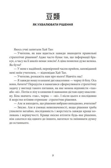 Стратегічне мислення, хоч і з'явилося дві з половиною тисячі років тому, є вираженням духу сучасності й поки що надбанням небагатьох. Як навчати стратегічного мислення? Підручники не допоможуть, лише особиста участь у стратегічних іграх, а ще оповідки, притчі — найдавніший жанр людської творчості, який знову набув актуальності у ХХІ сторіччі. Саме в такому жанрі книжка викладає здобутки світової стратегічної думки останніх двохсот років. Як і будь-які східні притчі, тут вони часто мають другий, прихований від квапливого погляду рівень. Основні принципи стратегії єдині для війни, бізнесу, дипломатії та політики, адже в усіх випадках ми маємо справу з противником, найчастіше стійким, розумним і розважливим, і так само єдині принципи управління людьми — носіями вільної волі та власного погляду на світ.