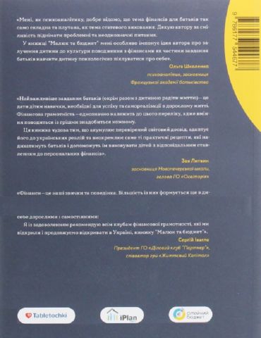 Коли розпочинати розмовляти з дітьми про гроші? Як краще давати кишенькові гроші? Як пояснити, що таке сімейний бюджет? Скільки і куди потрібно відкладати для якісної освіти? Як виховати свою дитину фінансово успішною? У цій книжці зібрано головне з досвіду провідних західних фахівців, а також із десятків статей щодо фінансової грамотності. Автор наводить адаптовані ігрові вправи та історії, якими можуть скористатися українські батьки. «Малюк та Бюджет» – це огляд семінарів, курсів, книжок, мультиків, фільмів, історій на тему дитячих фінансів і підприємництва. Це розмови з українськими батьками різного достатку, яких об’єднав позитивний досвід у навчанні власних дітей і готовність його оприлюднити. Якщо батьки володітимуть цією інформацією, то діти навчаться розумно управляти своїм грошима протягом усього життя.