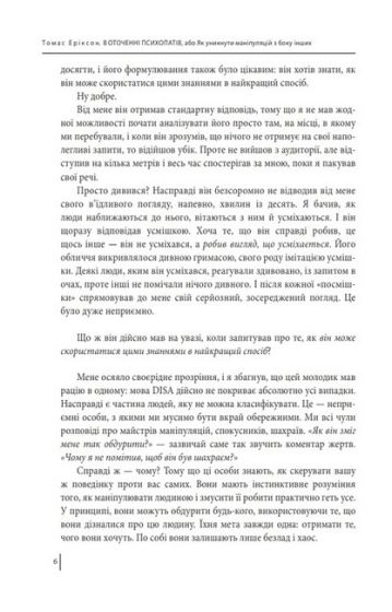 Нова книга Томаса Еріксона дає відповіді на питання: що твориться в голові психопата і чим він відрізняється від інших людей; як «вирахувати» психопата; як захиститися від його маніпуляцій?
