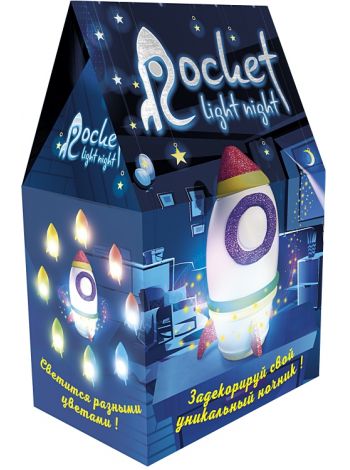 Комплектація: нічник-ракета, кульковий пластилін 3 пакету, супер легка маса Gumy Сlay 3 пакету, стек, інструкція.