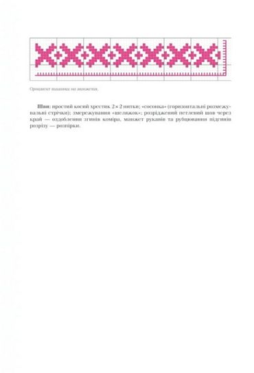 Видання містить схеми моделей жіночих і чоловічих вишиванок. Композиції створені на основі старовинних колекційних взірців, але з урахуванням сучасних тенденцій вишивання. Поліські, бойківські, галицькі, буковинські, закарпатські, слобожанські, полтавські, подільські орнаменти. Схеми розроблені автором за кращими колекційними взірцями з музейних і приватних колекцій. У книжці є все, що необхідно для того, аби створити та власними руками вишити красиву українську одежу для дорослих і підлітків: детальні схеми узорів для різних деталей сорочок, вказівки щодо вживання різноманітних поверхневих швів, схеми крою тощо.