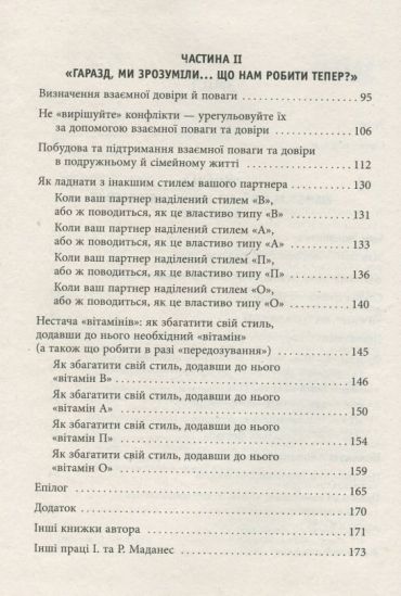 У першій частині книжки «Сила протилежностей» автор знайомить читача із принципами цієї методики, а в другій пропонує терапевтичні заходи для урегулювання конфліктів і встановлення гармонії в парі.