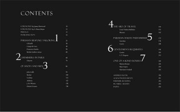 Preface • Introduction • 1. The Parisian Bespoke Tailoring: Cifonelli; Camps de Luca; Francesco Smalto; Berluti Atelier Arnys • 2. Of Men and Shoes: Men and Shoes, a contemporary love story: John Lobb; Berluti; Corthay; Aubercy; J.M. Weston; Dimitri Gomez • 3. Chemisiers in Paris: Charvet • 4. The Art of Travelling: Louis Vuitton special orders; Moynat Paris • 5. Parisian Haute Parfumerie: Guerlain; Caron • 6. Gentlemen’s