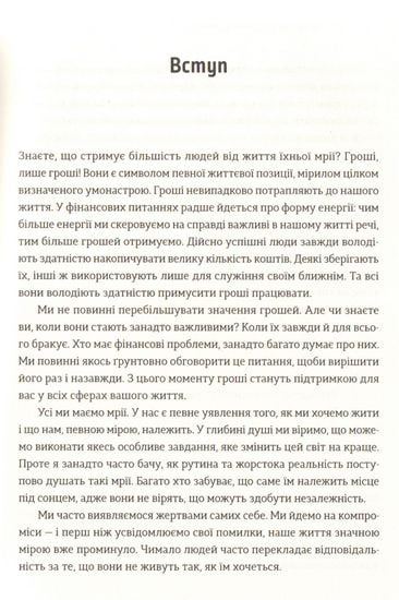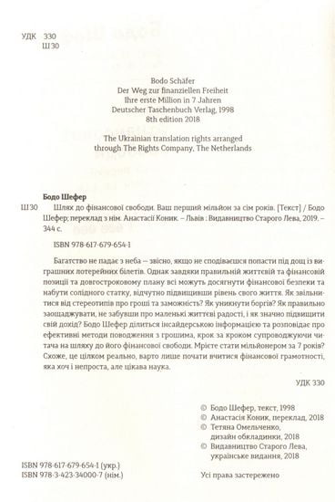 Багатство не падає з неба — звісно, якщо не сподіваєшся попасти під дощ із виграшних лотерейних білетів. Однак завдяки правильній життєвій та фінансовій позиції та довгостроковому плану всі можуть досягнути фінансової безпеки та набути солідного статку, відчутно підвищивши рівень свого життя. Як звільнитися від стереотипів про гроші та заможність? Як уникнути боргів? Як правильно заощаджувати, не забувши про маленькі життєві радості, і як значно підвищити свій дохід? Бодо Шефер ділиться інсайдерською інформацією та розповідає про ефективні методи поводження з грошима, крок за кроком супроводжуючи читача на шляху до його фінансової свободи. Мрієте стати мільйонером за 7 років? Схоже, це цілком реально, варто лише почати вчитися фінансової грамотності, яка хоч і непроста, але цікава наука.