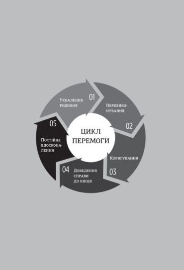 Леррі Вайдел визначає цикл з п'ятьма ятьох кроків, до яких вдаються серійні переможці, щоб здобути бажане: ухвалення рішення, перевиконування, коригування, доведення справи до кінця, постійне вдосконалення.
