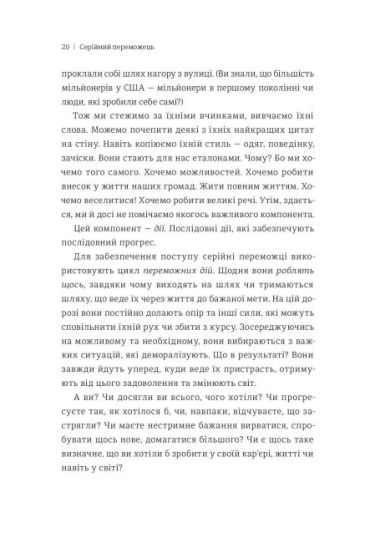 Як знайті енергію і час для нових ідей? Чому одним з нас вдається приваблювати успіх, а іншим – ні? Що є запорукою досягнення надмети? Відомий фінансовий консультант Леррі Вайдел дає відповіді на ці запитання, використовуючи досвіди мільйонерів, спортсменів і супер-бізнесменів. Мета автора ? «запустити революцію дії, розкрити потенціал цілої армії людей, що готові мчати вперед до великих, видатних промов, які вони справді хочуть робити – і які їм судилося зробити».