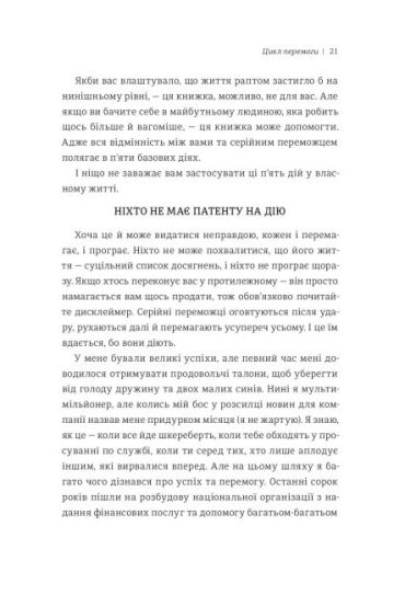 «Леррі Вайдел написавши корисну й надзвичайно змістовну книжку. Це не абстрактні роздуми про успіх, а суто конкретні поради, які допомагають розкрити власний потенціал. Автор акцентує увагу на шкоді від переваг, міфах про перемогу, на тому, що варто потурати власним примхам, щоб зрозуміти, чого насправді хочеш... Вайдел вибудовує логічний ланцюжок, який викликає довіру, а це означає, що й спонукатиме скористатися написаним», – вважає Світлана Павелецька, співзасновниця видавництва #книголав.