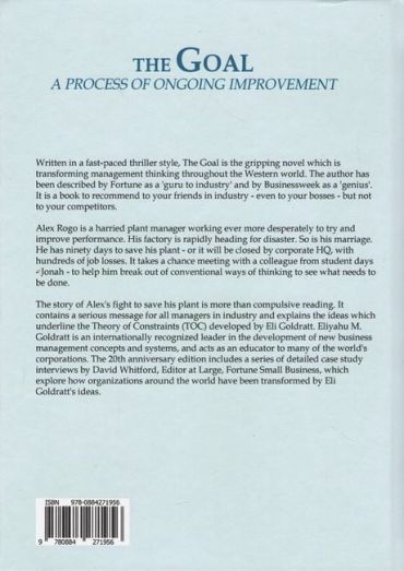 The story of Alex's fight to save his plant is more than compulsive reading. It contains a serious message for all managers in industry and explains the ideas which underline the Theory of Constraints (TOC) developed by Eli Goldratt. Eliyahu M. Goldratt is an internationally recognized leader in the development of new business management concepts and systems, and acts as an educator to many of the world's corporations. The 20th anniversary edition includes a series of detailed case study interviews by David Whitford, Editor at Large, Fortune Small Business, which explore how organizations around the world have been transformed by Eli Goldratt's ideas.