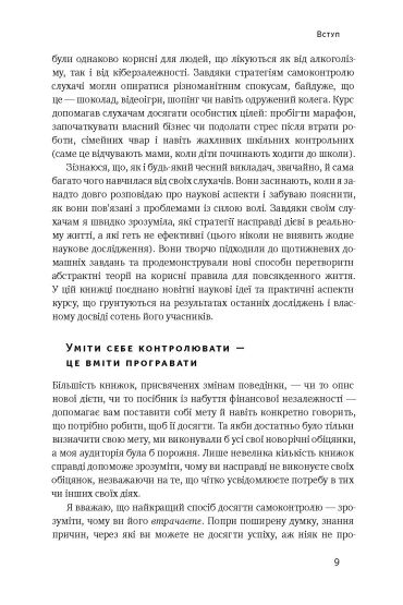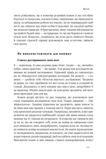 Основою книжки ставши курс «Наука сили волі», який Келлі Макґоніґал викладає в Стенфордському університеті. Професорка вдало поєднала цікаві факти про ті, як функціонує наш мозок, із вправами, які тренують силу волі. Ви довідаєтеся, чому в стресовій ситуації тягнетеся за цукеркою та «провалюєте» більшість планів на рік.