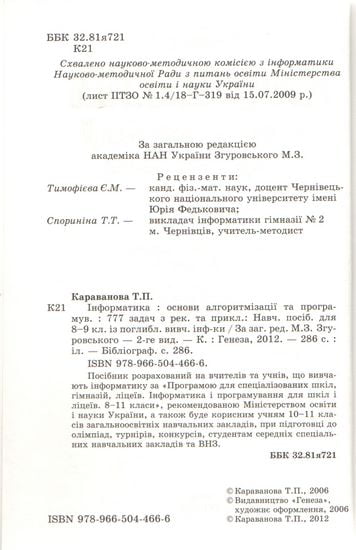 Інформатика. Основи алгоритмізації та програмування. 777 задач. Караванова Т. П. 31926