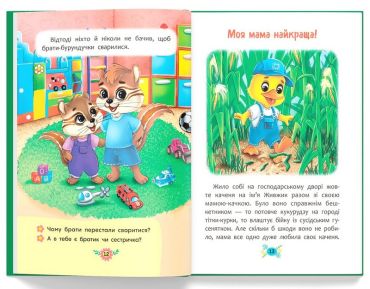 Ця книжка не звичайна, вона повчальна. Ти знайдеш у ній історії про звірят, які іноді не слухалися маму та сварилися з рідними. Утім наші герої вчасно зрозуміли, що сім’я — це найголовніше в житті, а рідні завжди підтримають і допоможуть. Хочеш дізнатися, як їм це вдалося? Розгортай книжку й читай казки про звірят, які зрозуміли, що їхні батьки та рідні найкращі і як сильно вони їх люблять.