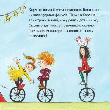 Карліне — дитина цирку. І коли в цирку треба замінити клоуна, який захворів, директор просить Карліне виступити. Чи ж вийде в неї?