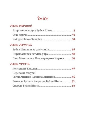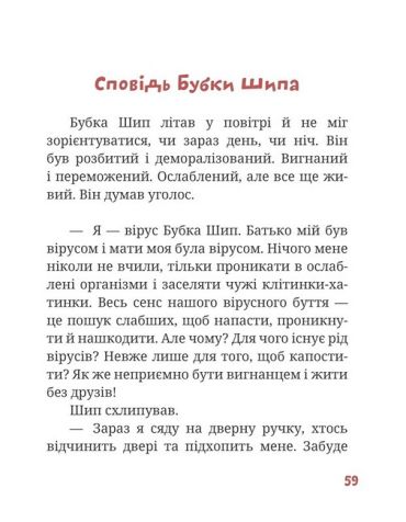 Був вечір, ми лежали в ліжку, і я на ходу складала історію про злісного віруса Бубку Шипа, який віроломно продерся в її горлечко. Самі собою з'являлися образи хоробрих захисників: Павла Кулі, Левка Хапайка, Кашлюка, Данила Антитіла та інших, що завзято протидіяли злодію.