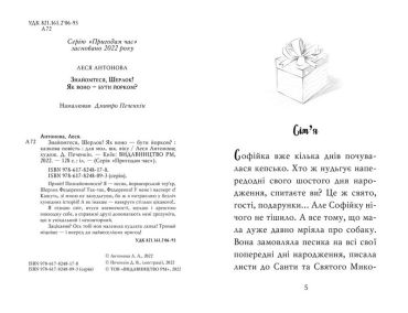 Привіт! Познайомимося? Я – песик, йоркширський тер’єр, Шерлок Федоренко! Так-так, Федоренко! У мене і паспорт є! Кажуть, зі мною не занудьгуєш, бо ж я потрапляю у безліч кумедних історій! А як інакше – навкруги стільки цікавого!.. Я пізнаю світ, вчуся впевненості, шукаю і зрештою знаходжу себе, а справжні друзі допомагають мені зрозуміти, що я унікальний і неповторний.