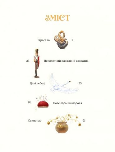 Тут хоробрий солдат отримує від старої відьми чарівне кресало. І тепер може здійснити будь-яке своє бажання, викликавши на службу трійко могутніх псів. Олов’яний солдатик прокидається вночі, щоб прожити іграшкове життя, сповнене аж ніяк не іграшкових випробувань, і знайти кохання. Король, обираючи нове вбрання, дізнається, що у його королівстві не лишилося чесних людей, і лише дитина здатна казати правду. Хоробра принцеса Еліза намагається будь-що порятувати одинадцятьох братів від закляття лихої мачухи, що обернула їх на лебедів. А принц у пошуках любові стає cвинопасом…