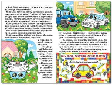 Ваш малюк любить казки про автівки, автобуси, літаки та все, що на колесах? Тоді ця книга саме для нього! Різноманітні, іноді кумедні та зворушливі герої казок дуже сподобаються вашій дитині. А пригоди, які з ними трапляються, зацікавлять і змусять задуматися про поведінку, ставлення до оточуючих, доброту й дружбу. Захопливі завдання в кінці казок допоможуть дитині розвинути логіку, увагу, інтелект та мислення. Читайте із задоволенням!