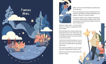 Це терапевтичні розповіді на добраніч, схожі на медитації. У цих теплих історіях природа ніжно обіймає та заколисує дитину. Від променів сонця, ароматів квітів і подиху вітру дитина наповнюється внутрішнім спокоєм і відчуває гармонію зі світом і собою. Діти навчаються усвідомлювати власні відчуття, медитувати, споглядати світ, концентрувати увагу на почуваннях у моменті зараз, відчувати опору й спокій. Вони знайомляться з основами саморегуляції: заспокійливе дихання, «заземлення», тілесна релаксація та любляча доброта. Це та сама затишна ковдра перед сном, яка огортає душу й занурює в цілковитий спокій.