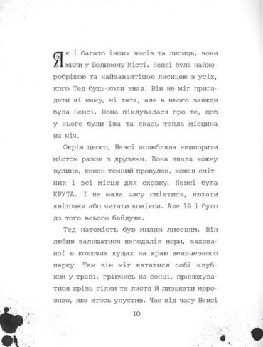 Лисеня Тед розлютило поганючу кішку, яка заправляла смітником їдальнею. Тому разом із сестрою Ненсі мусили тікати з міста. Вони поселилися в Темнолісі… і жили у спокої? НІ! Так почалися пригоди лисенят у дивній місцині, де всі мешканці доволі… специфічні. Екстравагантні качки грають у театрі, борсуки ганяють на кабріолеті, білки займаються дивним видом спорту, а орлиця взагалі злодійка. Та що в тому Темнолісі коїться?