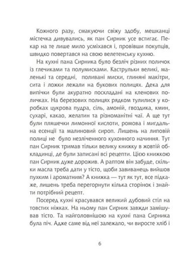 Напередодні Різдва у містечку Ясне трапилась незвичайна пригода. Славний пекар Сирник пошкодував останнього різдвяного пампушка дівчинці, котра завітала до його пекарні, бо сам був дуже голодним. З цієї миті все для нього на смак стало гірке! Пан Сирник не на жарт розхвилювався.