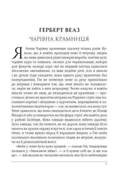 Збірка видатних оповідань, включених до шкільної програми, містить твори «Чарівна крамниця» англійського письменника Герберта Велза, «Золотий жук» американського письменника Едгара Аллана По, «Зоряний хлопчик» ірландського письменника Оскара Вайлда.