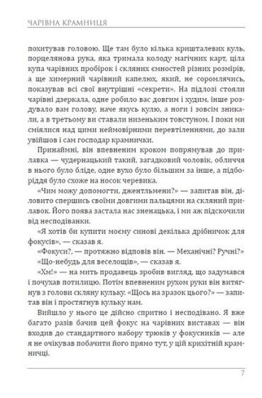 «Чарівна крамниця» (переклад Юлії Шматько) — новела, яка вважається початком жанру фентезі, розповідає про відвідини батьком та сином чарівної крамниці та отримані там незвичайні подарунки для Джипа. Твір вчить мріяти, бути чуйними, добрими й терплячими.