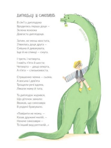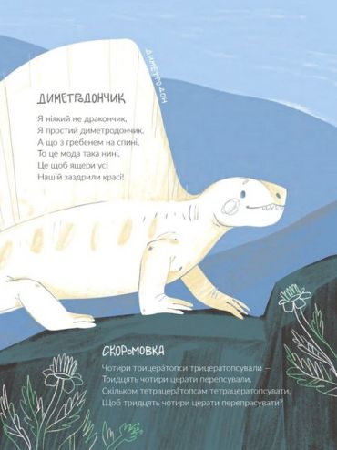 Один із найяскравіших сучасних українських поетів Юрій Бедрик і талановита юна художниця Анна Хомич запрошують маленьких читачів у веселу і сповнену дивовижних пригод мандрівку з найрізноманітнішими динозаврами — як популярними, так і рідкісними, про яких мало знають навіть учені. А хвацькі скоромовки, які супроводжують кожен вірш, допоможуть вам навчитися легко вимовляти навіть найзаковиристіші динозаврячі імена!