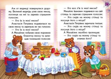 Казка Три ведмеді надрукована у маленькому зручному форматі, з міцними картонними сторінками. Видання, яке призначене для наймолодших, допоможе привчити дитину до захоплення читанням буквально з пелюшок!