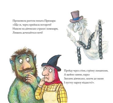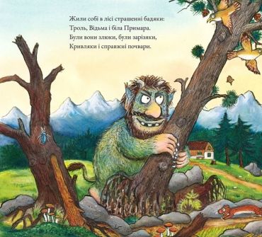 “Жили собі в лісі страшенні бадяки:Троль, Відьма і біла Примара,Були вони злюки, були зарізяки,Кривляки і справжні почвари…”