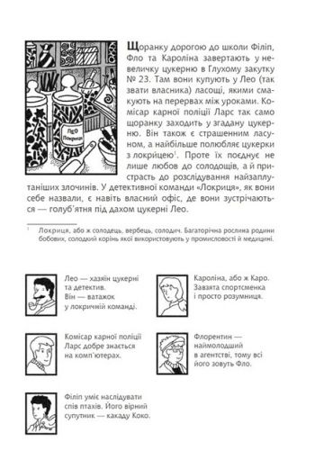 Щоранку дорогою до школи Філіп, Фло та Кароліна завертають у невеличку цукерню в Глухому закутку № 23. Там вони купують у Лео (так звати власника) ласощі, якими смакують на перервах між уроками. Комісар карної поліції Ларс так само щоранку заходить у згадану цукерню. Він також є страшенним ласуном, а найбільше полюбляє цукерки з локрицею. Проте їх поєднує не лише любов до солодощів, а й пристрасть до розслідування найзаплутаніших злочинів. У детективної команди «Локриця», як вони себе назвали, є навіть власний офіс, де вони зустрічаються, — голуб’ятня під дахом цукерні Лео.