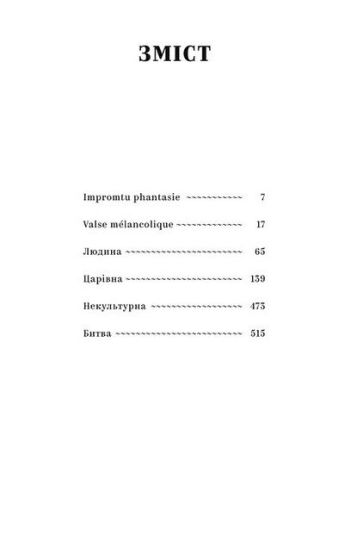 До вашої уваги одна з найвідоміших повістей Ольги Кобилянської — «Царівна», що створювалася впродовж 1888–1895 років спочатку німецькою, а згодом українською мовою та порушує актуальну на ті часи тему емансипації жінок. До видання також увійшли «Impromtu phantasie», «Valse melancolique», «Людина», «Некультурна» й «Битва».