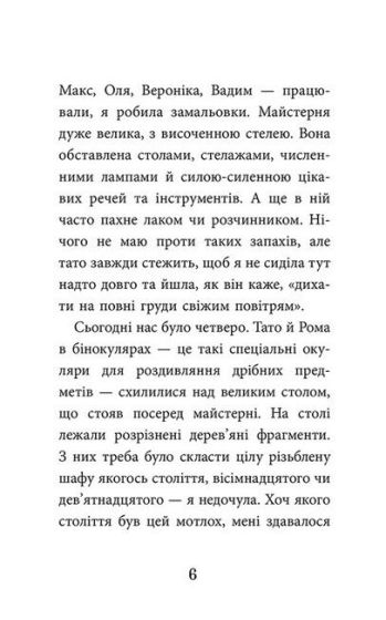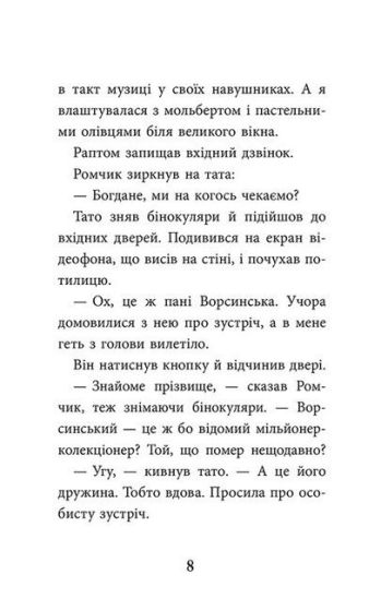 Цікава детективна історія, трохи містична, події якої відбуваються в сучасних реаліях. Чудово ілюстрована книжка вчить добра й небайдужості, спонукає до роздумів над тим, що дійсно важливе в житті, а що нічого не вартує.